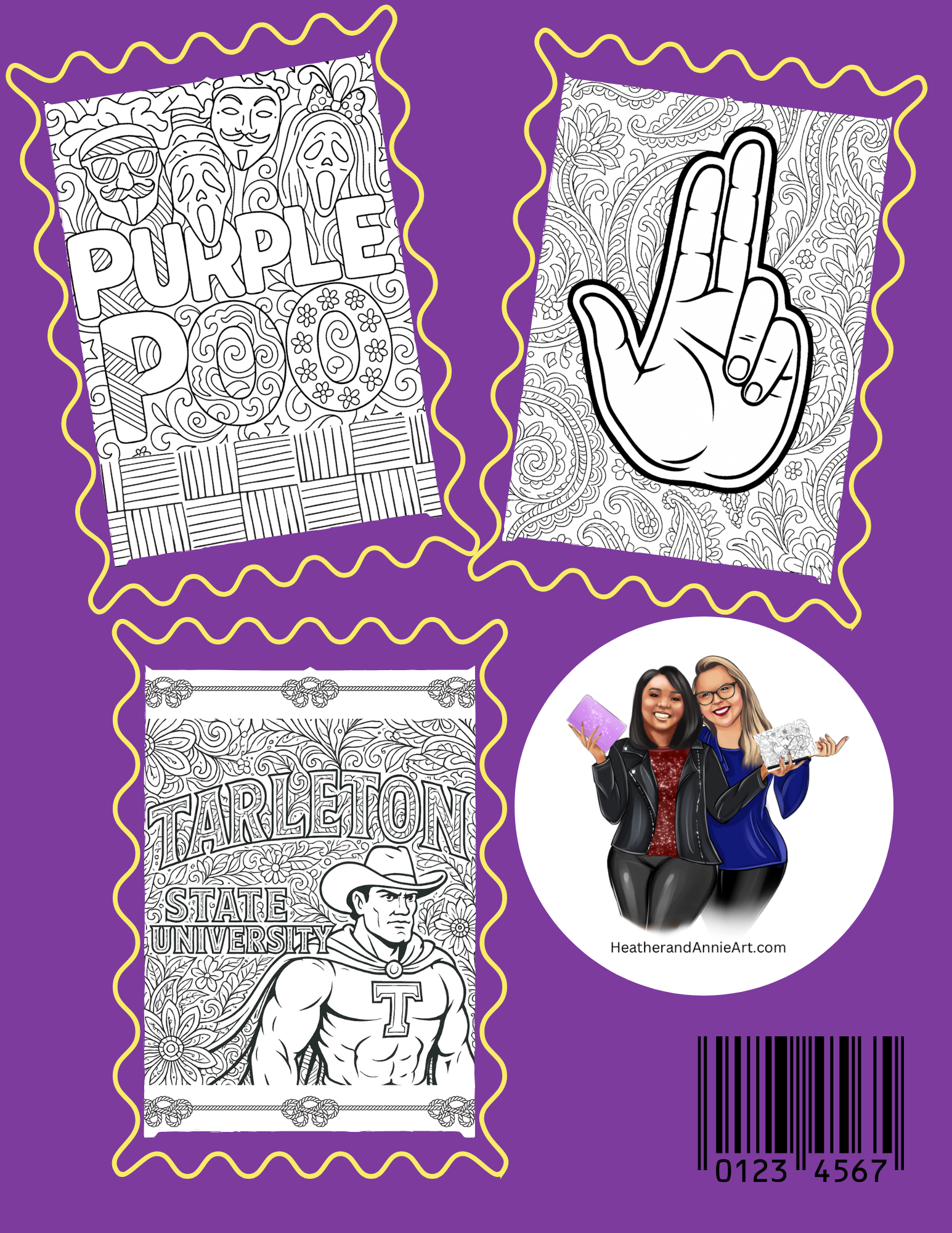 Step into the heart of Tarleton State University with this officially licensed adult coloring book, created by Heather & Annie Art. Inside you’ll find 16 beautifully illustrated, one-sided pages that celebrate the traditions, spirit, and landmarks that make Tarleton unforgettable.