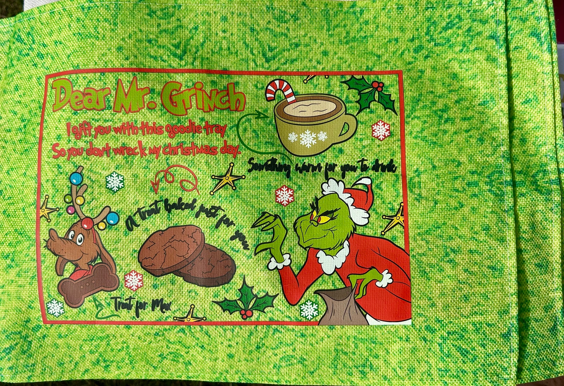 Dear Mr. Grinch Goodie Tray – Funny Christmas Placemat for Santa & the Grinch