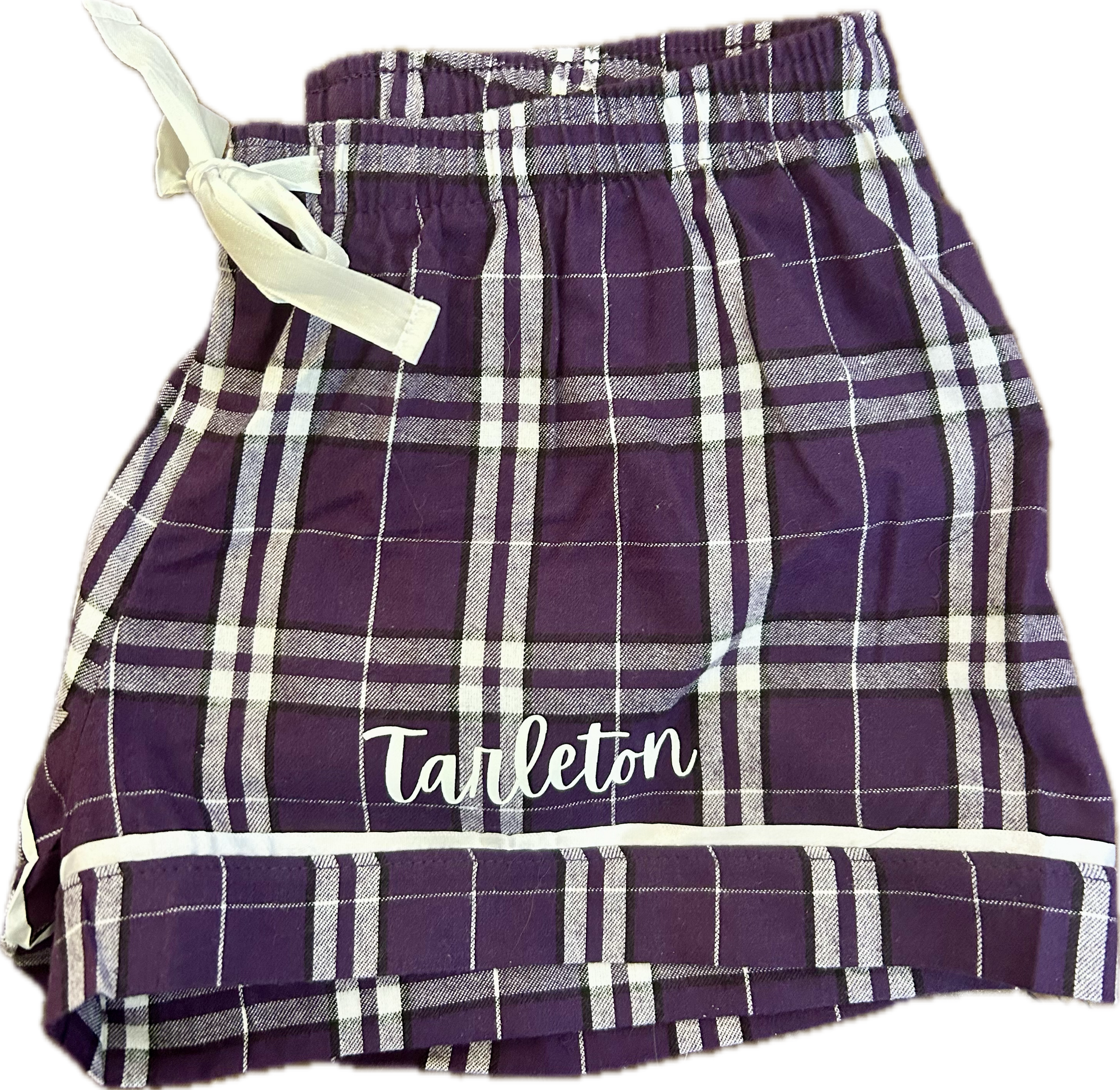 Please leave a note when ordering if you would like for me to press the word "Tarleton" on the leg of the shorts. If I don't see a note, I will assume you do not want it on there. There is no additional charge for this.